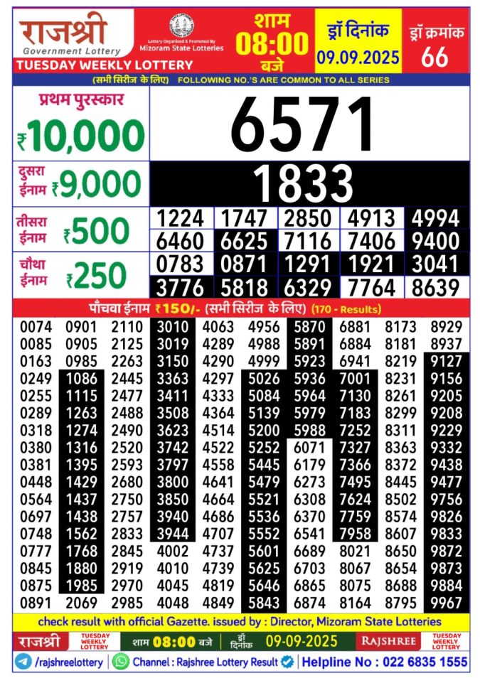Mizoram Rajshree Lottery Result Today 8 PM (09-09-2025)