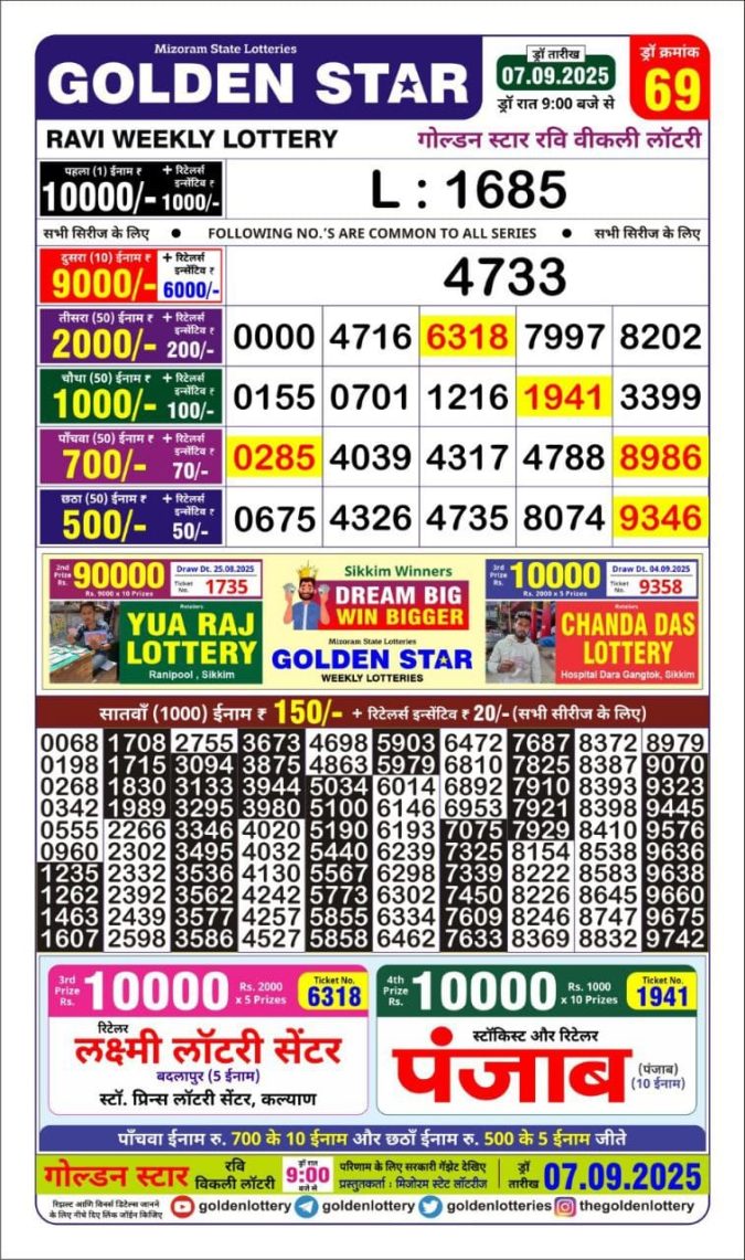 Golden Star Lottery Result Today 9 PM (07-09-2025)