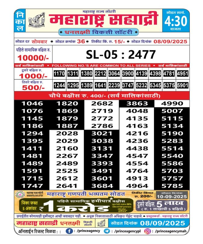 Maharashtra Sahyadri Lottery Result Today 4.30 PM (08-09-2025)