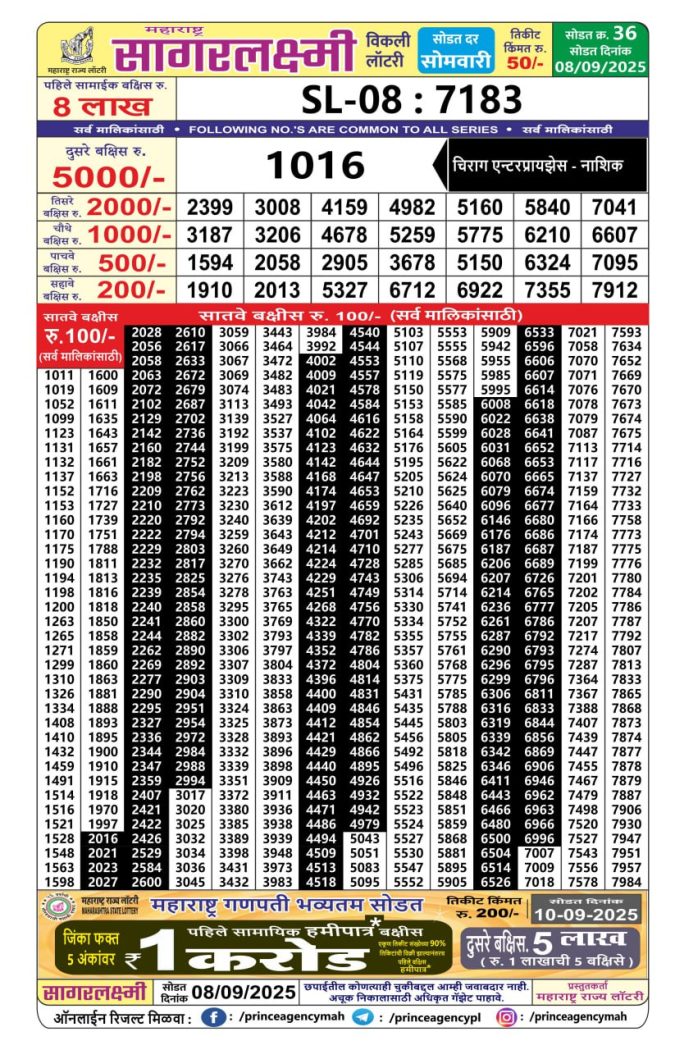 Maharashtra Lottery Result Today 4.15 PM (08-09-2025)