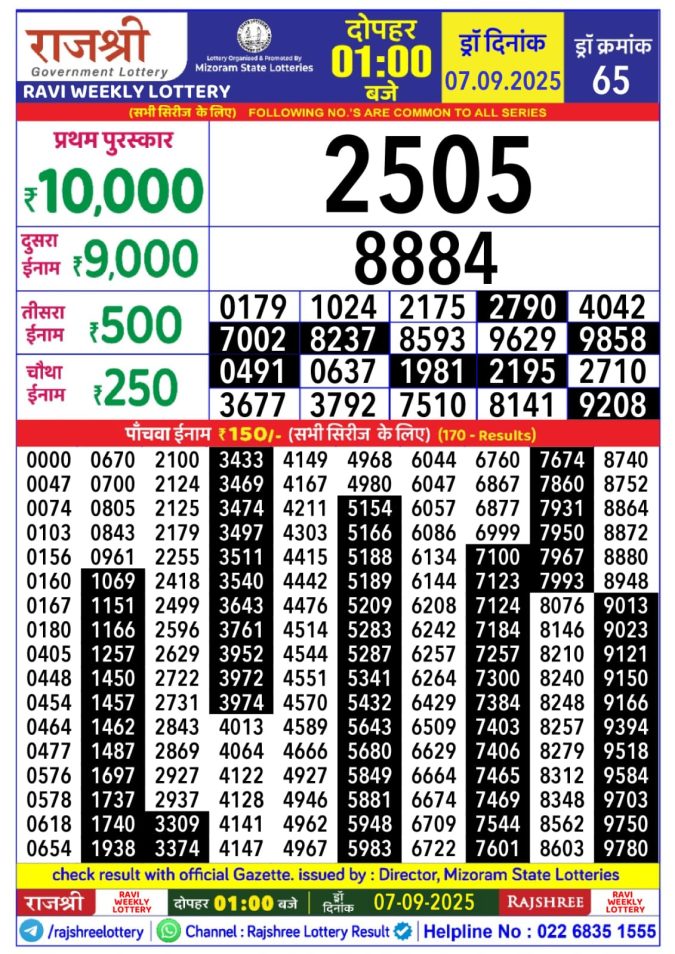 Mizoram Rajshree Lottery Result Today 1 PM (07-09-2025)