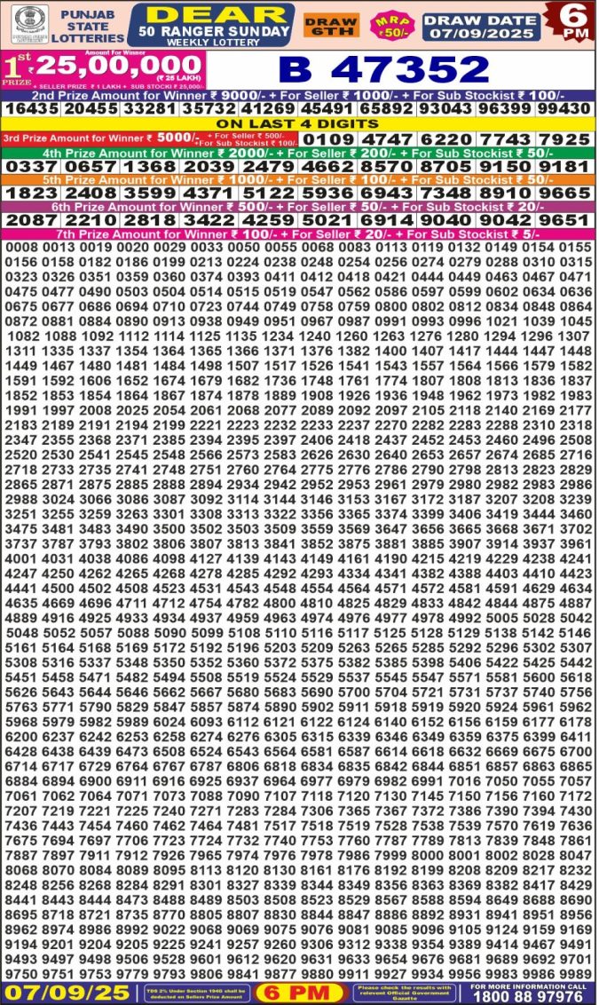 Punjab State Dear 50 Lottery Result Today 6 PM (07-09-2025)
