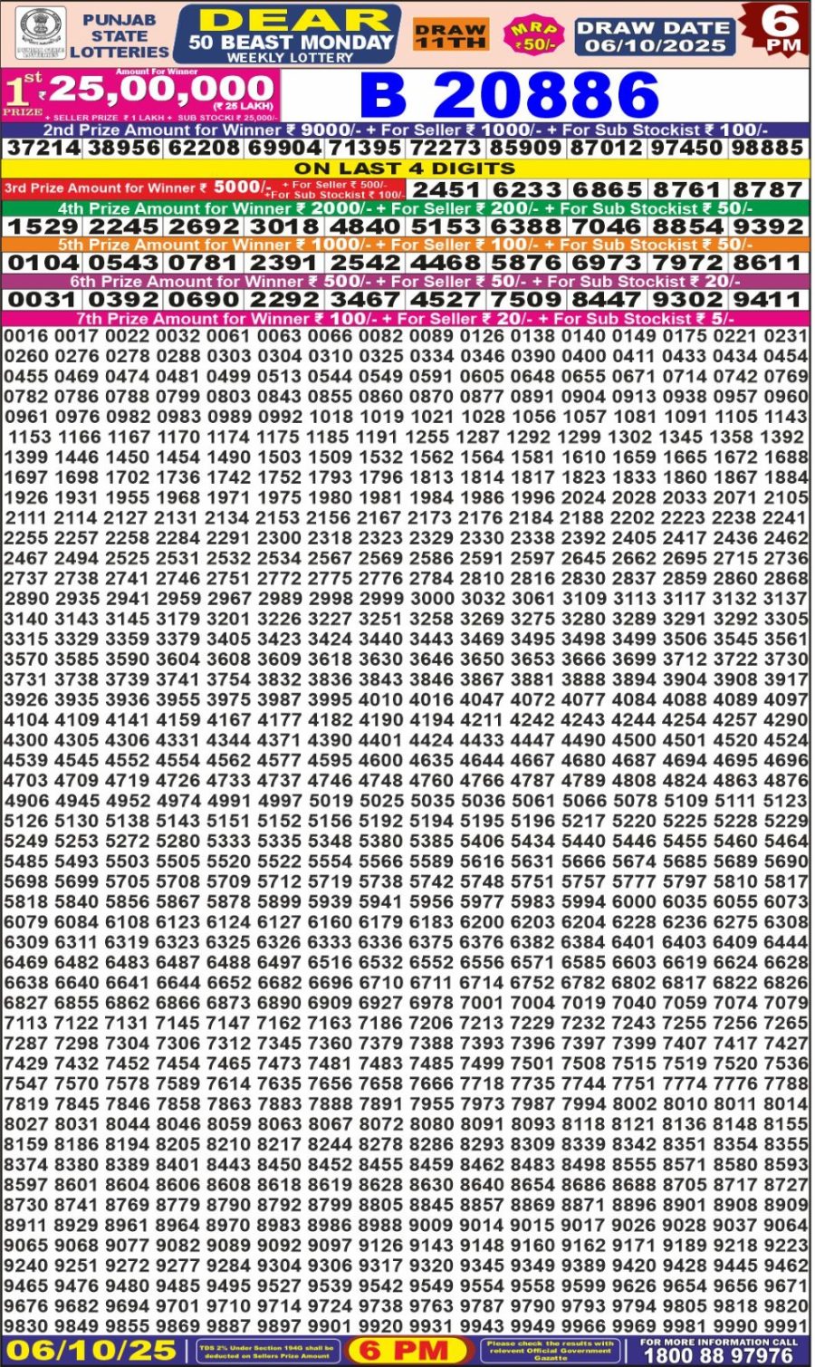 Punjab State Dear 50 Lottery Result Today 6 PM (06-10-2025) Leave a Comment on Punjab State Dear 50 Lottery Result Today 6 PM (06-10-2025) Posted in Lottery Sambad Results Share: TwitterFacebookPinterestRedditVKDiggLinkedinMix Related Results 0 62 Maharashtra Mohini Lottery Result Today 4.30 PM 22-06-2025 Maharashtra Mohini Lottery Result Today 4.30 PM 22-06-2025 Maharashtra Mohini Lottery Result Today 4.30 PM 22-06-2025 Maharashtra Mohini Lottery Result Today 4.30 PM 22-06-2025 Maharashtra Mohini Lottery Result Today 4.30 PM 22-06-2025 0 26 Maharashtra Sahyadri Lottery Result Today 4.30 PM (10-09-2025) Maharashtra Sahyadri Lottery Result Today 4.30 PM (10-09-2025) Maharashtra Sahyadri Lottery Result Today 4.30 PM (10-09-2025) Maharashtra Sahyadri Lottery Result Today 4.30 PM (10-09-2025) Maharashtra Sahyadri Lottery Result Today 4.30 PM (10-09-2025) 0 77 Goa State Rajshree 30 Lottery Result Today 8.30 PM 06-06-2025 Goa State Rajshree 30 Lottery Result Today 8.30 PM 06-06-2025 Goa State Rajshree 30 Lottery Result Today 8.30 PM 06-06-2025 Goa State Rajshree 30 Lottery Result Today 8.30 PM 06-06-2025 Goa State Rajshree 30 Lottery Result Today 8.30 PM 06-06-2025 0 25 Goa Rajshree 30 Lottery Result Today 8:30 PM (19-09-2025) Goa Rajshree 30 Lottery Result Today 8:30 PM (19-09-2025) Goa Rajshree 30 Lottery Result Today 8:30 PM (19-09-2025) Goa Rajshree 30 Lottery Result Today 8:30 PM (19-09-2025) Goa Rajshree 30 Lottery Result Today 8:30 PM (19-09-2025)