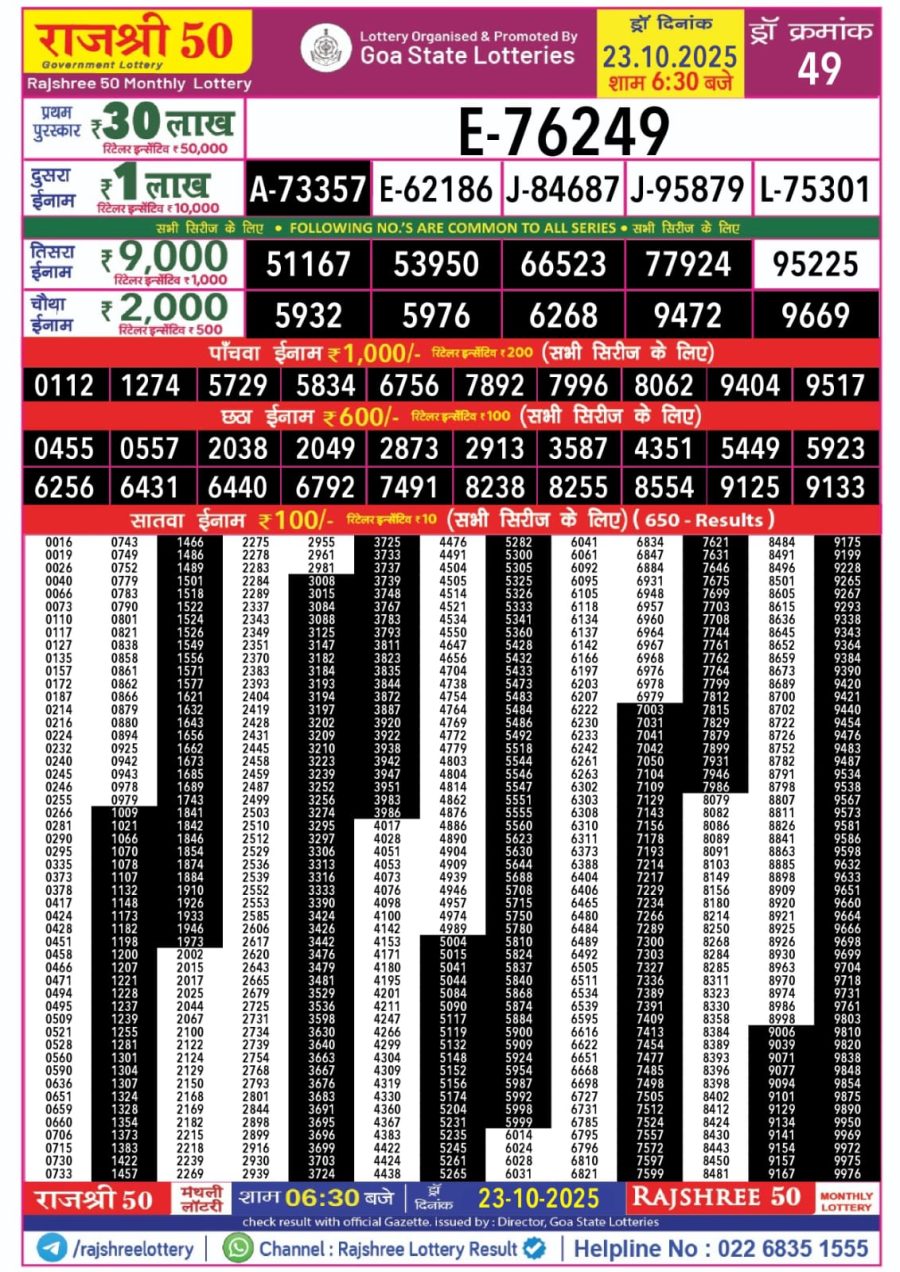Rajshree 50 Monthly Lottery Today’s Result (23-10-25) Leave a Comment on Rajshree 50 Monthly Lottery Today’s Result (23-10-25) Posted in Uncategorized Share: TwitterFacebookPinterestRedditVKDiggLinkedinMix Related Results 0 9 Maharashtra Gaurav Monthly Today Result (15-10-25) Maharashtra Gaurav Monthly Today Result (15-10-25) Maharashtra Gaurav Monthly Today Result (15-10-25) Maharashtra Gaurav Monthly Today Result (15-10-25) Maharashtra Gaurav Monthly Today Result (15-10-25) 0 12 Golden 200 Monthly Lottery Result Today (15-10-2025) Golden 200 Monthly Lottery Result Today (15-10-2025) Golden 200 Monthly Lottery Result Today (15-10-2025) Golden 200 Monthly Lottery Result Today (15-10-2025) Golden 200 Monthly Lottery Result Today (15-10-2025) 0 14 Dear Puja Bumper 2025 Lottery Result (11.10.25) Dear Puja Bumper 2025 Lottery Result (11.10.25) Dear Puja Bumper 2025 Lottery Result (11.10.25) Dear Puja Bumper 2025 Lottery Result (11.10.25) Dear Puja Bumper 2025 Lottery Result (11.10.25) 0 24 Rajshree 75 Monthly Lottery Result Today (09-10-2025) Rajshree 75 Monthly Lottery Result Today (09-10-2025) Rajshree 75 Monthly Lottery Result Today (09-10-2025) Rajshree 75 Monthly Lottery Result Today (09-10-2025) Rajshree 75 Monthly Lottery Result Today (09-10-2025)