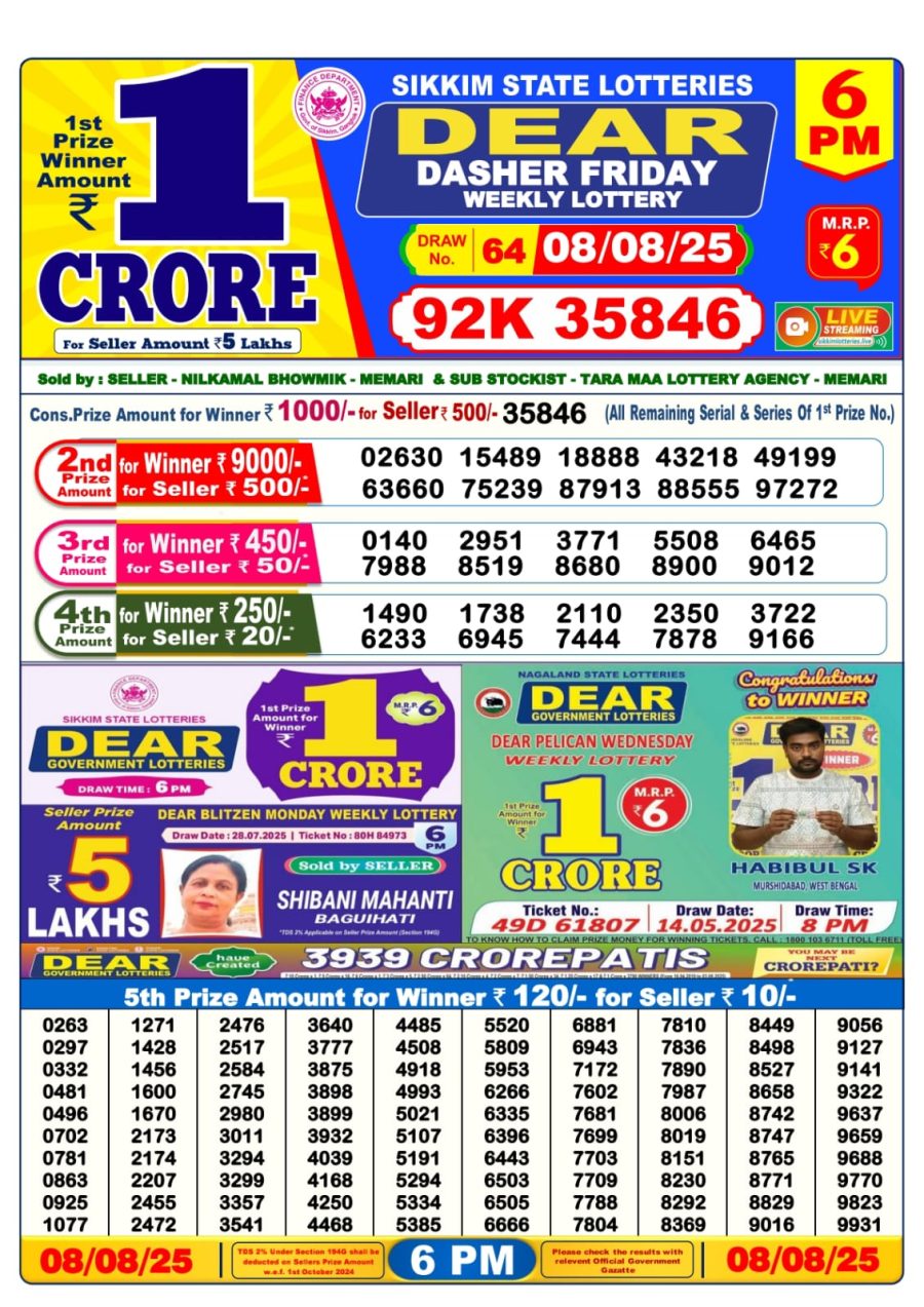 Sikkim Dear Lottery Result Today 6 PM (08-08-2025) Leave a Comment on Sikkim Dear Lottery Result Today 6 PM (08-08-2025) Posted in Lottery Sambad Results Share: TwitterFacebookPinterestRedditVKDiggLinkedinMix Related Results 0 38 Maharashtra Sahyadri Lottery Result Today 4.30 PM (09-08-2025) Maharashtra Sahyadri Lottery Result Today 4.30 PM (09-08-2025) Maharashtra Sahyadri Lottery Result Today 4.30 PM (09-08-2025) Maharashtra Sahyadri Lottery Result Today 4.30 PM (09-08-2025) Maharashtra Sahyadri Lottery Result Today 4.30 PM (09-08-2025) 0 70 Sikkim Dear Lottery Result Today 6 PM (25-06-2025) Sikkim Dear Lottery Result Today 6 PM (25-06-2025) Sikkim Dear Lottery Result Today 6 PM (25-06-2025) Sikkim Dear Lottery Result Today 6 PM (25-06-2025) Sikkim Dear Lottery Result Today 6 PM (25-06-2025) 0 48 Arunachal Dear 10 Lottery Result Today 1:30 PM (18-07-2025) Arunachal Dear 10 Lottery Result Today 1:30 PM (18-07-2025) Arunachal Dear 10 Lottery Result Today 1:30 PM (18-07-2025) Arunachal Dear 10 Lottery Result Today 1:30 PM (18-07-2025) Arunachal Dear 10 Lottery Result Today 1:30 PM (18-07-2025) 0 170 Sikkim State Dear 10 Lottery Result Today 7 PM 10-06-2025 Sikkim State Dear 10 Lottery Result Today 7 PM 10-06-2025 Sikkim State Dear 10 Lottery Result Today 7 PM 10-06-2025 Sikkim State Dear 10 Lottery Result Today 7 PM 10-06-2025 Sikkim State Dear 10 Lottery Result Today 7 PM 10-06-2025