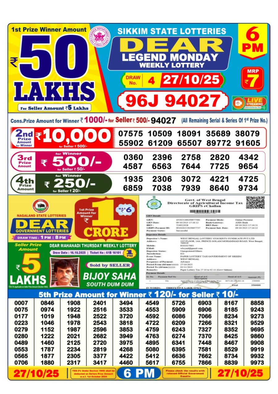 Sikkim Dear Lottery Result Today 6 PM (27-10-2025) Leave a Comment on Sikkim Dear Lottery Result Today 6 PM (27-10-2025) Posted in Lottery Sambad Results Share: TwitterFacebookPinterestRedditVKDiggLinkedinMix Related Results 0 49 Nagaland Dear Lottery Result Today 8 PM (31-10-2025) Nagaland Dear Lottery Result Today 8 PM (31-10-2025) Nagaland Dear Lottery Result Today 8 PM (31-10-2025) Nagaland Dear Lottery Result Today 8 PM (31-10-2025) Nagaland Dear Lottery Result Today 8 PM (31-10-2025) 0 18 Sikkim State Dear Lottery 6PM ResulS [21-01-2026] Sikkim State Dear Lottery 6PM ResulS [21-01-2026] Sikkim State Dear Lottery 6PM ResulS [21-01-2026] Sikkim State Dear Lottery 6PM ResulS [21-01-2026] Sikkim State Dear Lottery 6PM ResulS [21-01-2026] 0 71 Punjab State Dear 50 Lottery Result Today 6 PM (09-09-2025) Punjab State Dear 50 Lottery Result Today 6 PM (09-09-2025) Punjab State Dear 50 Lottery Result Today 6 PM (09-09-2025) Punjab State Dear 50 Lottery Result Today 6 PM (09-09-2025) Punjab State Dear 50 Lottery Result Today 6 PM (09-09-2025) 0 63 Mizoram Rajshree Lottery Result Today 8 PM (03-10-2025) Mizoram Rajshree Lottery Result Today 8 PM (03-10-2025) Mizoram Rajshree Lottery Result Today 8 PM (03-10-2025) Mizoram Rajshree Lottery Result Today 8 PM (03-10-2025) Mizoram Rajshree Lottery Result Today 8 PM (03-10-2025)