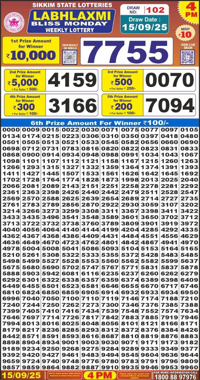 Sikkim Labh Laxmi Lottery Result Today 4 PM (15-09-2025) Leave a Comment on Sikkim Labh Laxmi Lottery Result Today 4 PM (15-09-2025) Posted in Lottery Sambad Results Share: TwitterFacebookPinterestRedditVKDiggLinkedinMix Related Results 0 50 Maharashtra Sahyadri Lottery Result Today 4.30 PM (18-07-2025) Maharashtra Sahyadri Lottery Result Today 4.30 PM (18-07-2025) Maharashtra Sahyadri Lottery Result Today 4.30 PM (18-07-2025) Maharashtra Sahyadri Lottery Result Today 4.30 PM (18-07-2025) Maharashtra Sahyadri Lottery Result Today 4.30 PM (18-07-2025) 0 14 Nagaland Dear Lottery Result Today 8 PM (04-10-2025) Nagaland Dear Lottery Result Today 8 PM (04-10-2025) Nagaland Dear Lottery Result Today 8 PM (04-10-2025) Nagaland Dear Lottery Result Today 8 PM (04-10-2025) Nagaland Dear Lottery Result Today 8 PM (04-10-2025) 0 79 Mizoram State Rajshree Lottery Result Today 4 PM 14-05-2025 Mizoram State Rajshree Lottery Result Today 4 PM 14-05-2025 Mizoram State Rajshree Lottery Result Today 4 PM 14-05-2025 Mizoram State Rajshree Lottery Result Today 4 PM 14-05-2025 Mizoram State Rajshree Lottery Result Today 4 PM 14-05-2025 0 40 Punjab State Dear 50 Lottery Result Today 6 pm (05-08-2025) Punjab State Dear 50 Lottery Result Today 6 pm (05-08-2025) Punjab State Dear 50 Lottery Result Today 6 pm (05-08-2025) Punjab State Dear 50 Lottery Result Today 6 pm (05-08-2025) Punjab State Dear 50 Lottery Result Today 6 pm (05-08-2025)