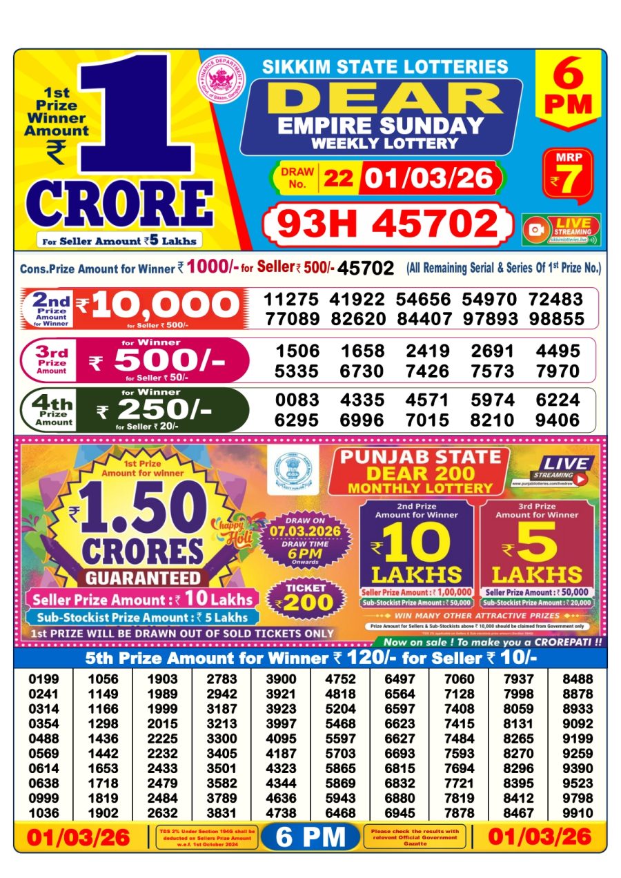 Sikkim State Dear Lottery 6PM ResulS [01-03-2026] Leave a Comment on Sikkim State Dear Lottery 6PM ResulS [01-03-2026] Posted in Lottery Sambad Results Share: TwitterFacebookPinterestRedditVKDiggLinkedinMix Related Results 0 135 Sikkim State Dear 10 Lottery Result Today 7 PM 29-05-2025 Sikkim State Dear 10 Lottery Result Today 7 PM 29-05-2025 Sikkim State Dear 10 Lottery Result Today 7 PM 29-05-2025 Sikkim State Dear 10 Lottery Result Today 7 PM 29-05-2025 Sikkim State Dear 10 Lottery Result Today 7 PM 29-05-2025 0 148 Maharashtra Gaj Laxmi Lottery Result Today 4.45 PM 2-05-2025 Maharashtra Gaj Laxmi Lottery Result Today 4.45 PM 2-05-2025 Maharashtra Gaj Laxmi Lottery Result Today 4.45 PM 2-05-2025 Maharashtra Gaj Laxmi Lottery Result Today 4.45 PM 2-05-2025 Maharashtra Gaj Laxmi Lottery Result Today 4.45 PM 2-05-2025 0 145 Maharashtra Gaj Laxmi Lottery Result Today 4.45 PM 4-05-2025 Maharashtra Gaj Laxmi Lottery Result Today 4.45 PM 4-05-2025 Maharashtra Gaj Laxmi Lottery Result Today 4.45 PM 4-05-2025 Maharashtra Gaj Laxmi Lottery Result Today 4.45 PM 4-05-2025 Maharashtra Gaj Laxmi Lottery Result Today 4.45 PM 4-05-2025 0 137 Nagaland State Lottery Result Today 8 PM 15-03-2025 Nagaland State Lottery Result Today 8 PM 15-03-2025 Nagaland State Lottery Result Today 8 PM 15-03-2025 Nagaland State Lottery Result Today 8 PM 15-03-2025 Nagaland State Lottery Result Today 8 PM 15-03-2025