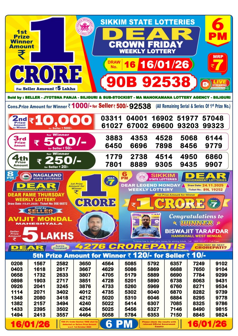 Sikkim State Dear Lottery 6PM ResulS [16-01-2026] Leave a Comment on Sikkim State Dear Lottery 6PM ResulS [16-01-2026] Posted in Lottery Sambad Results Share: TwitterFacebookPinterestRedditVKDiggLinkedinMix Related Results 0 91 Sikkim Dear Lottery Result Today 6 PM (15-07-2025) Sikkim Dear Lottery Result Today 6 PM (15-07-2025) Sikkim Dear Lottery Result Today 6 PM (15-07-2025) Sikkim Dear Lottery Result Today 6 PM (15-07-2025) Sikkim Dear Lottery Result Today 6 PM (15-07-2025) 0 70 Sikkim Dear Lottery Result Today 6 PM (23-08-2025) Sikkim Dear Lottery Result Today 6 PM (23-08-2025) Sikkim Dear Lottery Result Today 6 PM (23-08-2025) Sikkim Dear Lottery Result Today 6 PM (23-08-2025) Sikkim Dear Lottery Result Today 6 PM (23-08-2025) 0 74 Dear rathayatra bumper lottery result (19-07-25) Dear rathayatra bumper lottery result (19-07-25) Dear rathayatra bumper lottery result (19-07-25) Dear rathayatra bumper lottery result (19-07-25) Dear rathayatra bumper lottery result (19-07-25) 0 125 Maharashtra Sahyadari Lottery Result Today 4.30 PM 10-05-2025 Maharashtra Sahyadari Lottery Result Today 4.30 PM 10-05-2025 Maharashtra Sahyadari Lottery Result Today 4.30 PM 10-05-2025 Maharashtra Sahyadari Lottery Result Today 4.30 PM 10-05-2025 Maharashtra Sahyadari Lottery Result Today 4.30 PM 10-05-2025