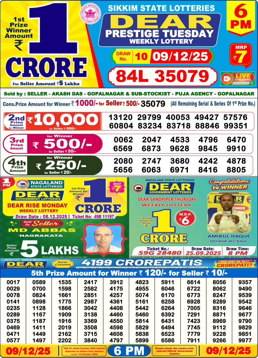 Sikkim State Dear Lottery Sambad 6PM [09-12-2025] Leave a Comment on Sikkim State Dear Lottery Sambad 6PM [09-12-2025] Posted in Lottery Sambad Results Share: TwitterFacebookPinterestRedditVKDiggLinkedinMix Related Results 0 29 Golden Star Lottery Result Today 9 PM (26-10-2025) Golden Star Lottery Result Today 9 PM (26-10-2025) Golden Star Lottery Result Today 9 PM (26-10-2025) Golden Star Lottery Result Today 9 PM (26-10-2025) Golden Star Lottery Result Today 9 PM (26-10-2025) 0 57 Maharashtra Gajlaxmi Lottery Result Today 4.45 PM (20-08-2025) Maharashtra Gajlaxmi Lottery Result Today 4.45 PM (20-08-2025) Maharashtra Gajlaxmi Lottery Result Today 4.45 PM (20-08-2025) Maharashtra Gajlaxmi Lottery Result Today 4.45 PM (20-08-2025) Maharashtra Gajlaxmi Lottery Result Today 4.45 PM (20-08-2025) 0 47 Sikkim Dear Lottery Result Today 6 PM (08-09-2025) Sikkim Dear Lottery Result Today 6 PM (08-09-2025) Sikkim Dear Lottery Result Today 6 PM (08-09-2025) Sikkim Dear Lottery Result Today 6 PM (08-09-2025) Sikkim Dear Lottery Result Today 6 PM (08-09-2025) 0 114 Nagaland State Dear 100 Lottery Result Today 5 PM 27-05-2025 Nagaland State Dear 100 Lottery Result Today 5 PM 27-05-2025 Nagaland State Dear 100 Lottery Result Today 5 PM 27-05-2025 Nagaland State Dear 100 Lottery Result Today 5 PM 27-05-2025 Nagaland State Dear 100 Lottery Result Today 5 PM 27-05-2025