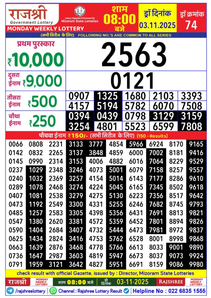 Mizoram Rajshree Lottery Result Today 8 PM (03-11-2025)